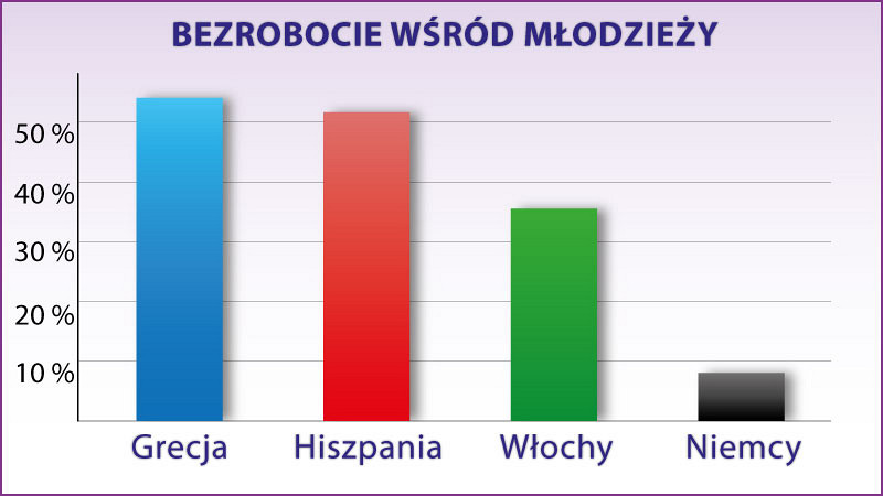 O ile bezrobocie młodzieży przekracza poziom 50 proc. w Grecji i Hiszpanii, a 35 proc. we Włoszech, o tyle w Niemczech od 2005 r. stale spada i wynosi poniżej 10 proc. od dwóch lat. Osłabienie euro sprawiło, że eksport niemiecki poza UE wzrósł od 2009 r. o 42 proc., osiągając poziom ponad 420 mld euro, jednak i w ramach UE jest od niego wyższy o 200 mld euro i w tym samym czasie również rósł dynamicznie, o 25 proc. przekraczając poziom przedkryzysowy.