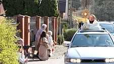 Kiedy my nie możemy przyjść do Pana Jezusa, to On przychodzi do nas! Po rezurekcji w parafii pod wezwaniem Matki Boskiej Zwycięskiej w Warszawie Rembertowie, proboszcz ks. dziekan Emil Owczarek z Najświętszym Sakramentem przejechał odkrytym samochodem ulicami parafii, aby pobłogosławić mieszkańców.