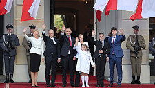 Prezydent Karol Nawrocki wraz z rodziną udali się do Pałacu Prezydenckiego na Krakowskim Przedmieściu. Podczas przejścia witali ich tłumnie Polacy, którzy specjalnie przyjechali do Warszawy, żeby uczestniczyć w uroczystościach zaprzysiężenia nowego Prezydenta RP. Przejście uświetniły orkiestra oraz Kompania Reprezentacyjna Wojska Polskiego. Nową parę prezydencką przywitali prezydent Andrzej Duda z małżonką Agatą Kornhauser-Dudą
