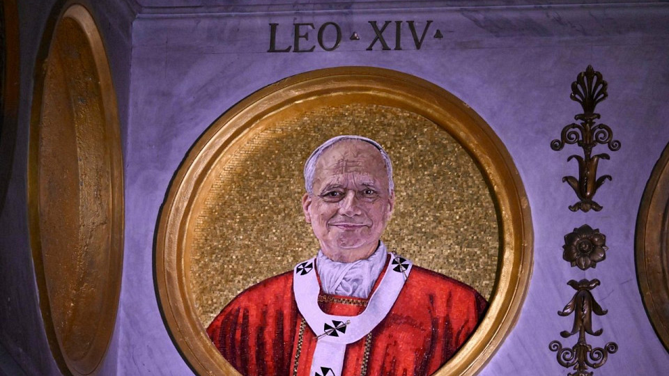 Mozaika z wizerunkiem Leona XIV została podświetlona