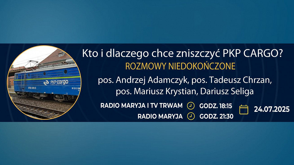 Dzisiaj, 24 lipca, zapraszamy na „Rozmowy niedokończone” pt.: „Kto i dlaczego chce zniszczyć PKP CARGO?”.