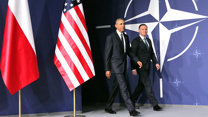 Po spotkaniu z prezydentem Andrzejem Dudą amerykański przywódca podziękował Polsce za udział w międzynarodowych misjach, w tym w walce z Państwem Islamskim. – Cieszymy się, że USA tak zdecydowanie wspierają wzmocnienie potencjału militarnego NATO w naszej części Europy, na wschodniej flance Sojuszu – powiedział polski prezydent.
