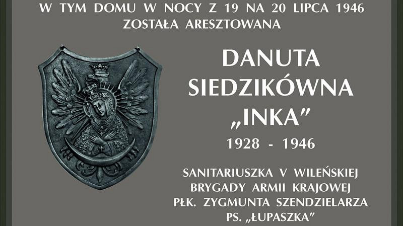 W przygotowaniu napisu na tablicy, która 20 lipca w południe zostanie odsłonięta na domu przy ul. Wróblewskiego 7 w Gdańsku, pomagał tutejszy oddział Instytutu Pamięci Narodowej. Brzmi on następująco: „W tym domu w nocy z 19 na 20 lipca 1946 roku została aresztowana Danuta Siedzikówna ’Inka’ 1928-1946, sanitariuszka V Wileńskiej Brygady Armii Krajowej płk. Zygmunta Szendzielarza ps. ’Łupaszka’. Komitet społeczny”.