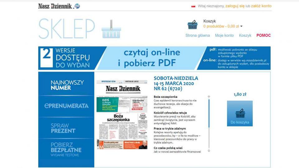 Osobom, które zdecydowały się na skorzystanie z tej formy zamawiania, przypominamy, że kwartalna prenumerata „Naszego Dziennika” (wydanie elektroniczne – dostęp on-line i PDF), to wydatek 89 zł. Natomiast za prenumeratę roczną takiego wydania trzeba będzie zapłacić 329 zł.