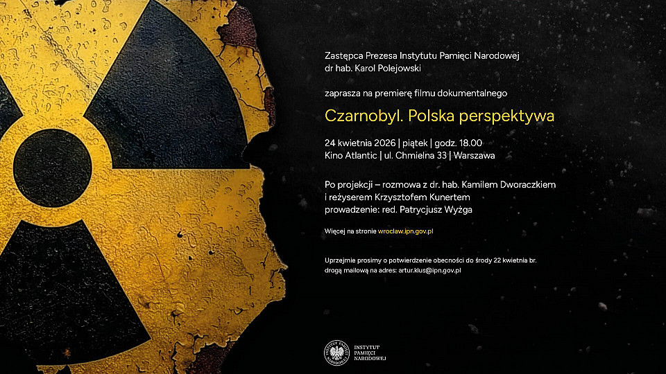 Biuro Edukacji Narodowej Instytut Pamięci Narodowej zaprasza na premierowy pokaz filmu dokumentalnego „Czarnobyl. Polska perspektywa”, który odbędzie się w piątek 24 kwietnia 2026 r. o godz. 18.00 w Kinie Atlantic przy ul. Chmielnej 33 w Warszawie.
