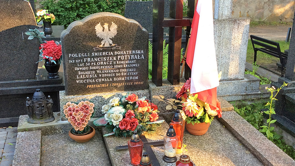 Przy grobie kpt. „Oracza” – Franciszka Potyrały, oddaliśmy hołd żołnierzom oddziału „Lalusia”. Sierżant Władysław Janczewski ps. „Laluś” objął zimą 1945 roku dowództwo nad drużyną przyboczną dowódcy Zgrupowania Północ Okręgu Nowogródzkiego Armii Krajowej por. „Krysi” – Jana Borysewicza, który poległ 21 stycznia 1945 roku w walce z obławą NKWD pod wsią Kowalki. Wraz ze swoimi żołnierzami „Laluś” przebijał się z Nowogródczyzny na zachód. Oddział poniósł duże straty 28 lipca 1945 r. w bitwie pod Kraśnianami – rannymi zaopiekowała się sokólska organizacja AK-AKO.