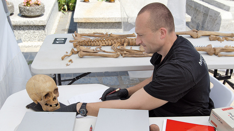 Pod namiotem Instytutu Pamięci Narodowej na terenie warszawskiej nekropolii spotkaliśmy wczoraj dr. Łukasza Szleszkowskiego z Zakładu Medycyny Sądowej Uniwersytetu Medycznego we Wrocławiu. Był pochylony nad rozłożonymi na stole szczątkami.