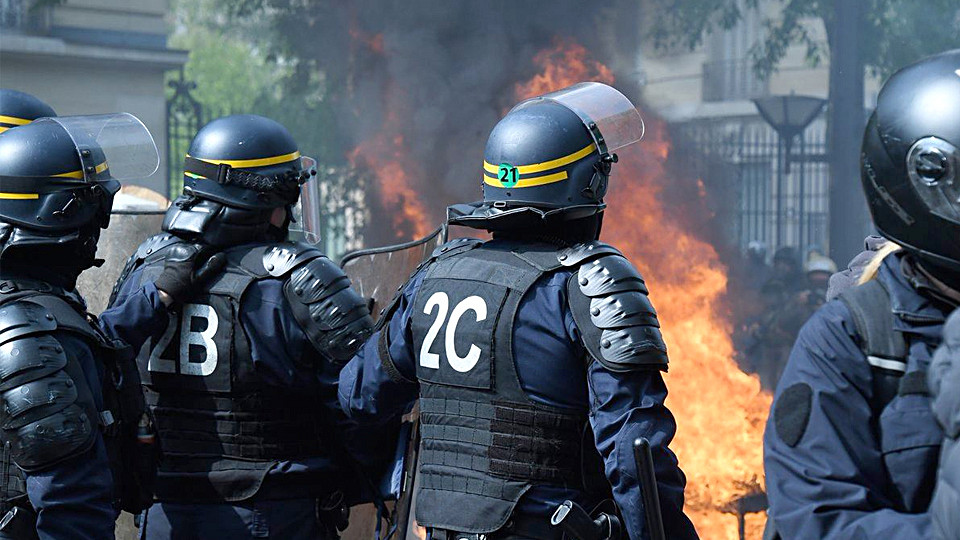 Reuters pisał o dziesiątkach demonstrantów w bluzach z kapturami, którzy w centrum Paryża obrzucali policję kamieniami, a także o podpalonych koszach na śmieci i skuterach. Interweniowała policja, używając gazu łzawiącego i granatów ogłuszających. Funkcjonariusze starali się skierować tłum na plac Republiki we wschodniej części miasta, gdzie władze wydały pozwolenie na demonstrację.
