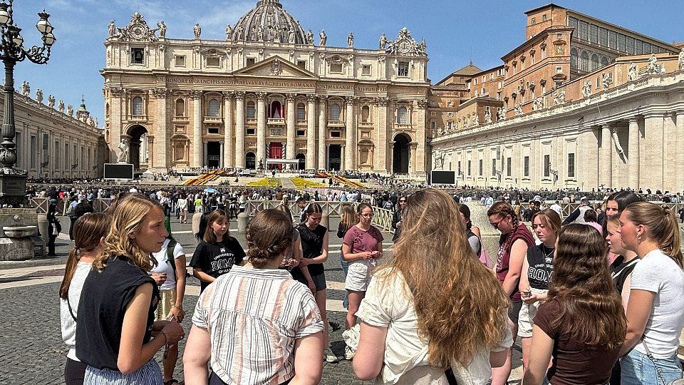 Przed obeliskiem na pl. św. Piotra stali klerycy, księża, siostry zakonne oraz grupy pielgrzymów. Pogrążeni byli w zadumie i modlitwie. Grupka nastolatek odmawiała Różaniec po angielsku, grupa młodych kobiet – po włosku.