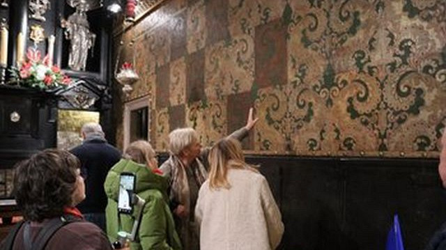 – Było to o tyle skomplikowane, że nie zdejmowaliśmy kurdybanów ze ścian. Takie było założenie, żeby ta konserwacja była konserwacją zachowawczą, żeby nie za bardzo ingerować w tę oryginalną materię – opisywała. Łatki były wkładane przez pęknięcia i klejone specjalną żywicą, a następnie prasowane przez papier silikonowy. Ostatnim etapem było pokrycie kurdybanów werniksem, co ożywiło ich kolorystykę i zabezpieczyło materiał. Na koniec wykonano pastowanie.