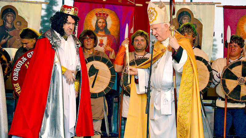 – Ojciec Święty Jan XV odegrał niezwykle istotne znaczenie w początkach państwa polskiego, gdyż od Mieszka I w 992 roku otrzymał on nasz kraj pod opiekę Stolicy Apostolskiej. Książę Mieszko I chciał w ten sposób zapewnić skuteczniejszą obronę państwa polskiego przed politycznymi zakusami Niemców i Czechów – mówił po sobotnim spektaklu ks. bp Dec.
