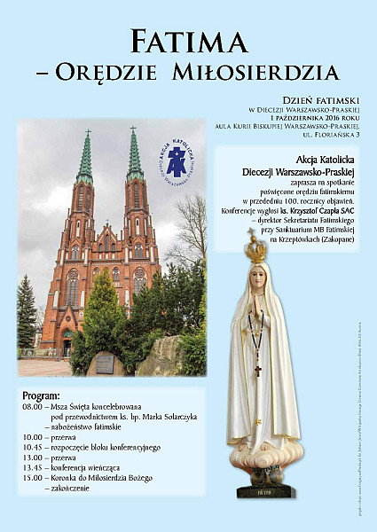 Spotkanie odbędzie się w auli kurii biskupiej warszawsko-praskiej przy ul. Floriańskiej 3. Będzie ono poświęcone orędziu fatimskiemu niemal w przededniu 100. rocznicy objawień Matki Bożej w Fatimie. Konferencje na ich temat wygłosi ks. Krzysztof Czapla SAC. Pallotyn podkreśla, że pobożność fatimska powinna być ściśle związana z kultem Niepokalanego Serca Maryi.