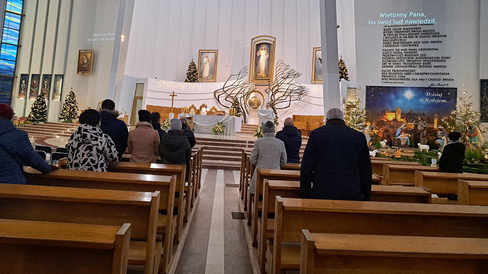 Po Godzinie Miłosierdzia Mszy Świętej przewodniczył ks. Mateusz Wyrobkiewicz, a homilię wygłosił ks. Janusz Kościelniak. – Przychodzimy dziś do Jezusa z tą szczególną prośbą, o zdrowie dla dzieci. Tych dzieci, które mama nosi pod sercem, tych dzieci, które już się urodziły, dzieci starszych, kilkunastoletnich. Przychodzimy właśnie z tą prośbą – wskazał kapłan. Przytoczył też historię pewnego mężczyzny, który modlił się przez kilka dni, bo jego żona zapadła w śpiączkę po operacji. Po pewnym czasie kobieta obudziła się i zaczęła wracać do zdrowia, a szczęśliwy mąż wyznał, że to właśnie w tym miejscu wybłagał cud jej uzdrowienia.