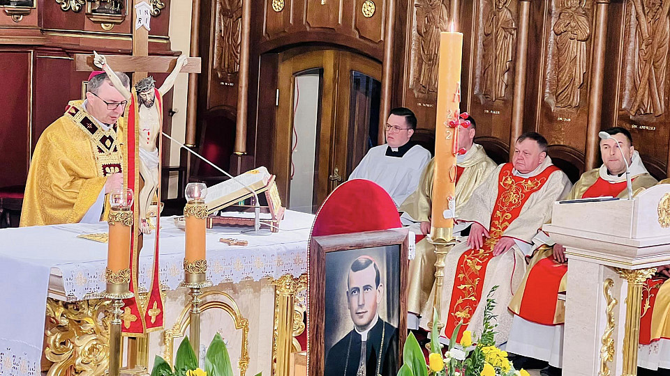 Wskazując na postawę bł. ks. bp. Michała Kozala, przypomniał fragmenty homilii Jana Pawła II wygłoszonej podczas uroczystości beatyfikacyjnej w Warszawie. „Dzisiaj z radością i uniesieniem dopisujemy do nich jeszcze jedno imię i nazwisko: biskup Michał Kozal, powołany w przededniu ostatniej wojny i straszliwej okupacji do posługi biskupiej w kościele włocławskim. Potem więziony i zesłany do obozu koncentracyjnego w Dachau. Jeden z tysięcy! Tam umęczony – odszedł w opinii świętości. Dziś tu, w Warszawie, wyniesiony do chwały ołtarzy jako męczennik” – cytował biskup kaliski.