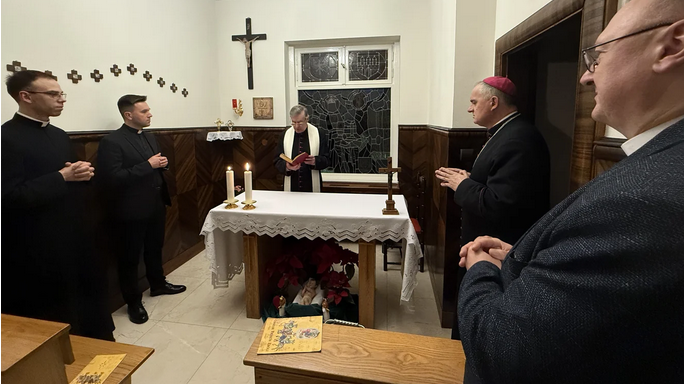 Spotkanie rozpoczęto od wspólnego odśpiewania kolędy „Wśród nocnej ciszy” i modlitwy w biskupiej kaplicy.