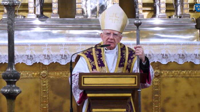 Dodał, że wzorem wiary w ostateczne zwycięstwo Chrystusa jest Matka Boża trzymająca umęczone Ciało swojego Syna na Golgocie. Zauważył, że Pieta była inspiracją do powstania obrazu Matki Bożej Katyńskiej, namalowanego przez Annę Danutę Staszewską, czy obrazu Matki Bożej AK, namalowanego przez Irenę Pokrzywnicką. – Stąd Ojczyzna nasza, wpatrzona w swoją Matkę